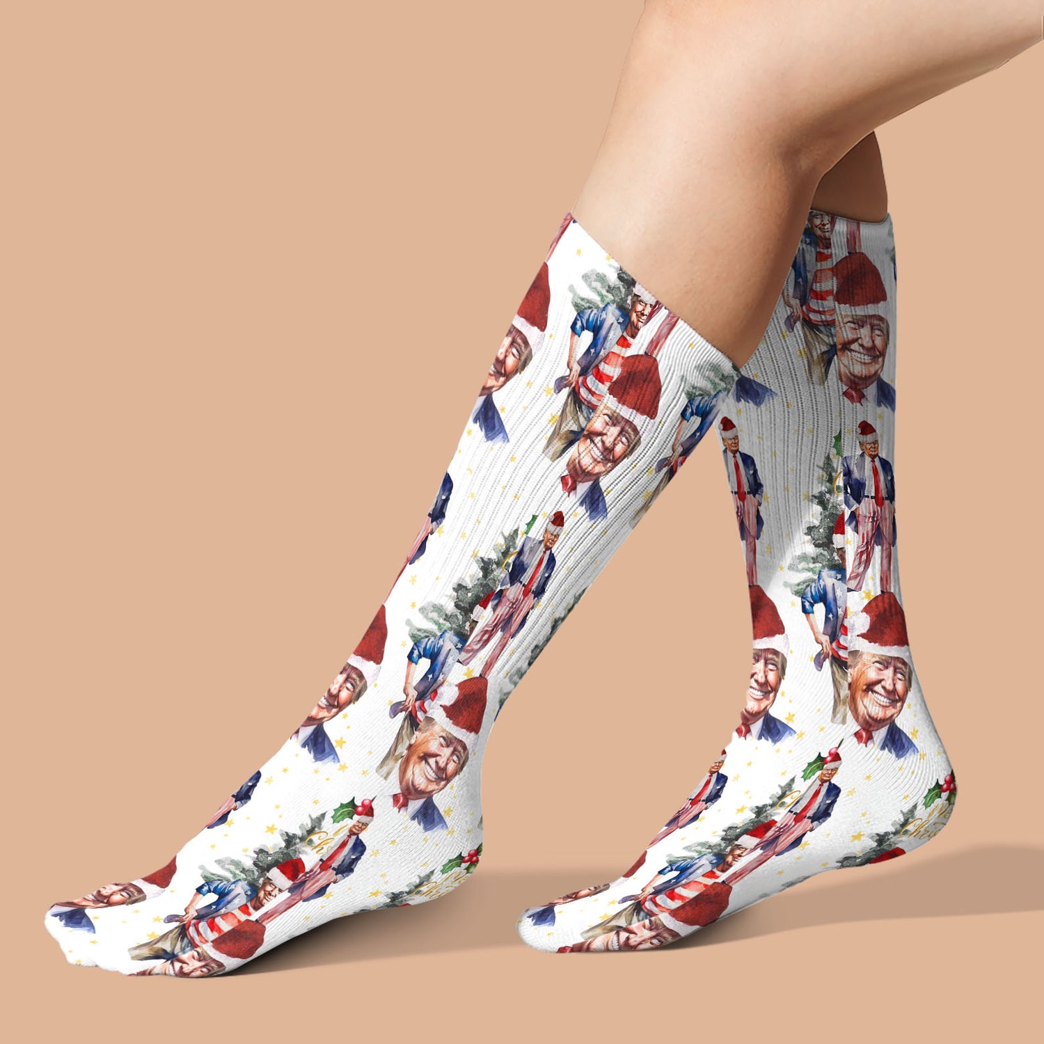 Christmas Watercolor Trump Santa Socks, President Gift for Christmas, Gift For Trump Supporters.