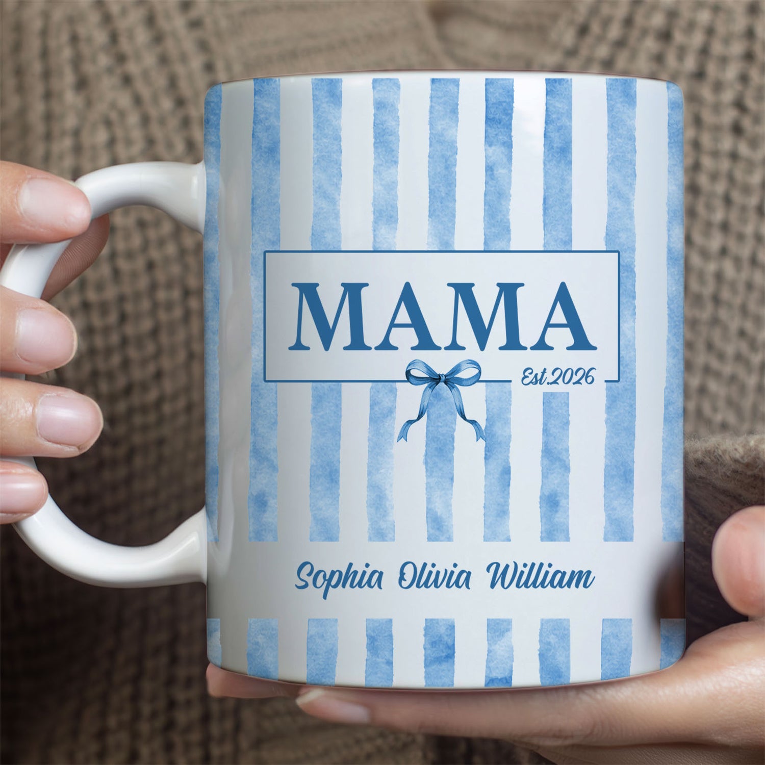 Custom Kids Names Mama Mug, Personalized Stripe Coffee Cup, Mothers Day Gift, White Mug Accent Mug 684820