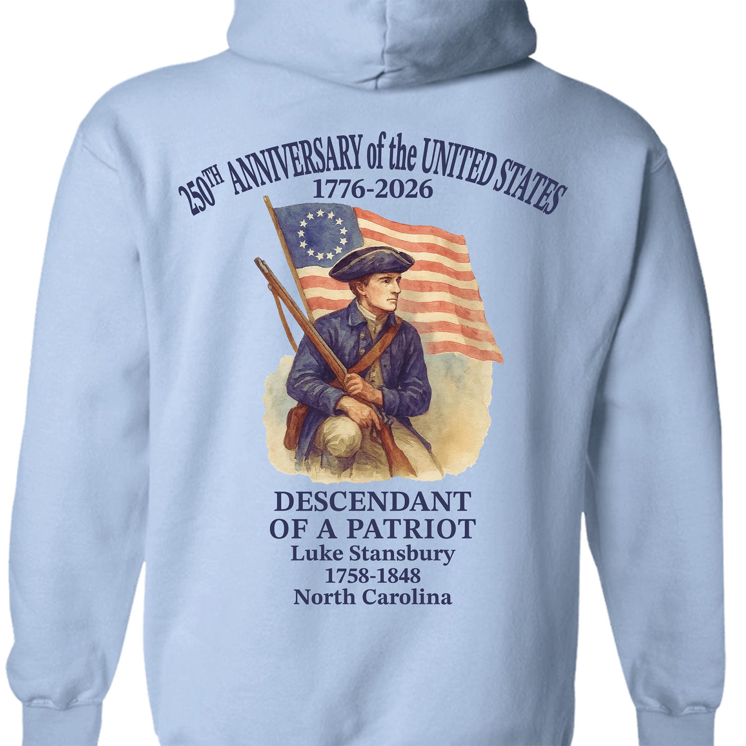 This Custom Name 250 Years of America backside shirt showcases a “Descendant of a Patriot” design honoring America’s legacy from 1776 to 2026. Personalized with your chosen name, it adds a distinctive and meaningful detail to patriotic apparel. Ideal for national holidays, commemorative events, or year-round expression of heritage and pride.