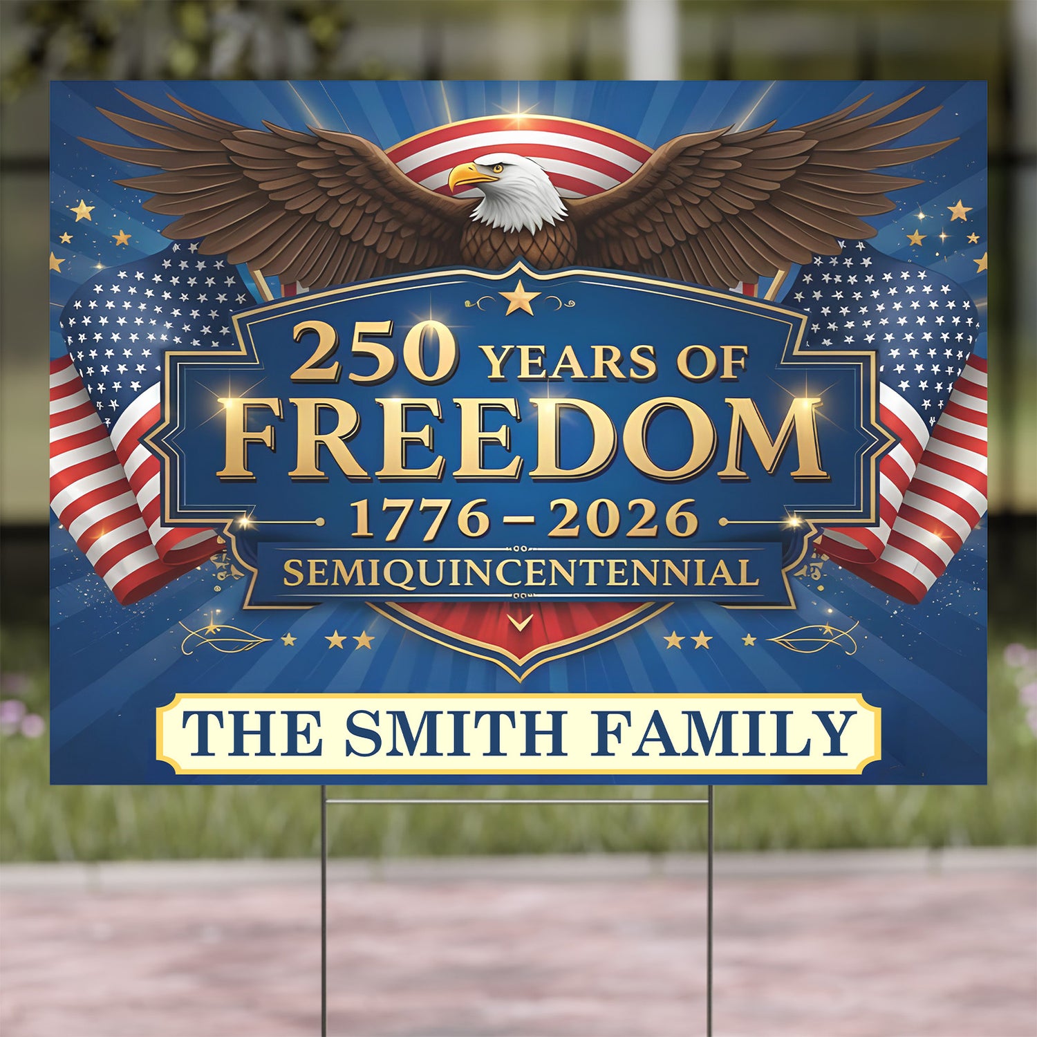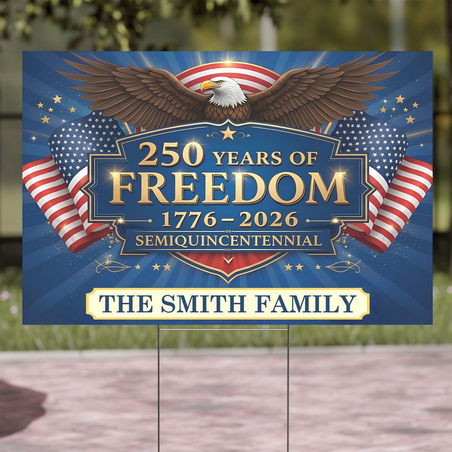 Custom Name 250 Years of Freedom Yard Sign 1776–2026, Personalized 4th of July Garden Decor