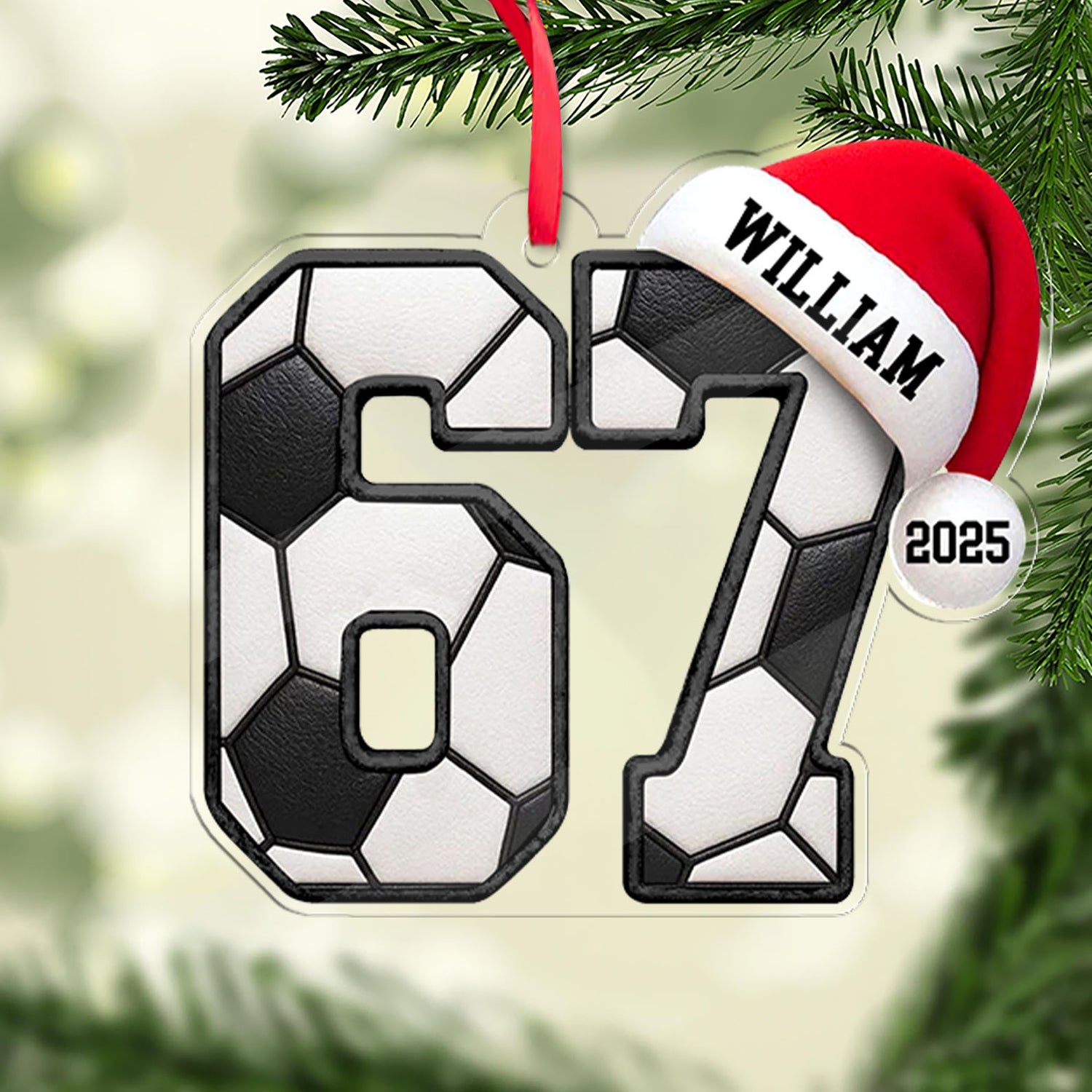 Custom Name 6 7 Soccer Acrylic Ornament, Personalized Trending 6 7 Meme Sports Christmas Ornament