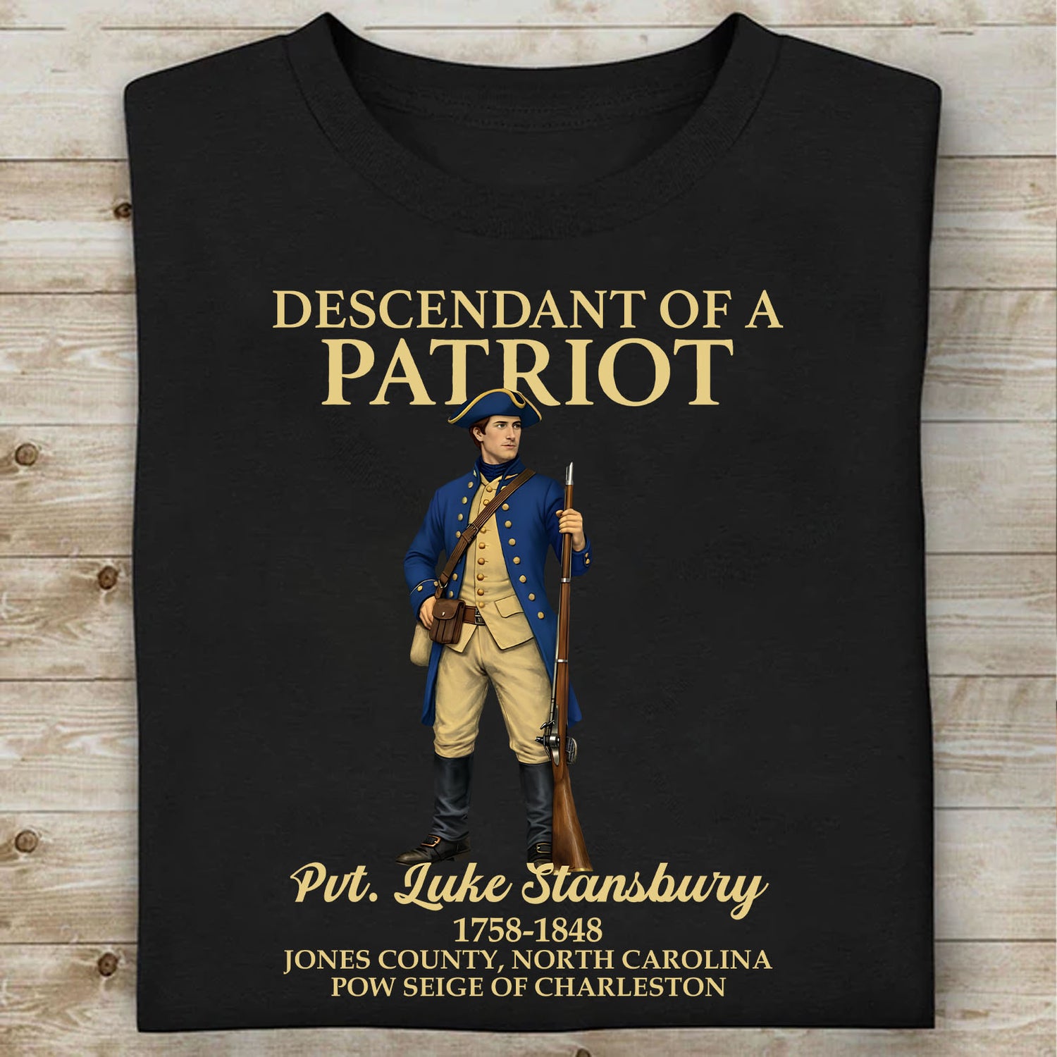 I love my new patriotic T-shirt that had my grandfather revolutionary war hero Sam Howard! How very cool! Service was fast. They did a good job and it got here in about four days.! awesome product!