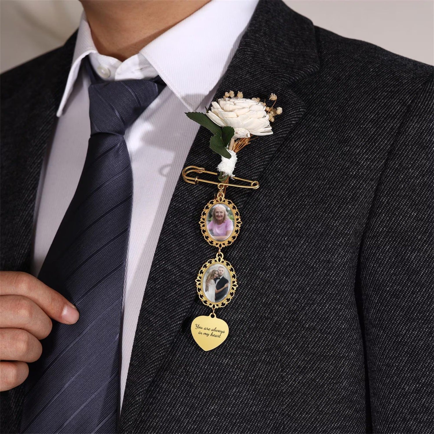 Keep your loved ones close on your special day with this beautifully crafted Memorial Pin and Bridal Bouquet Charm. Designed to hold a cherished photo, this elegant bouquet photo charm is a meaningful way to honor those who are with you in spirit. Perfect for weddings, it easily attaches to your bridal bouquet, adding a sentimental touch without overwhelming your style. Thoughtfully made with high-quality materials, this memorial photo charm makes a heartfelt keepsake or gift for brides who want to carry love and memories down the aisle.