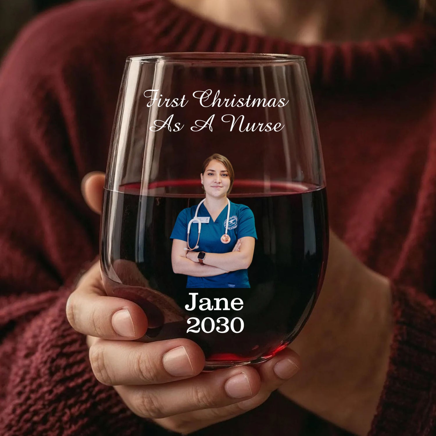 Personalized First Christmas as a Nurse Wine Glass | Custom Name and Year Wine Glass | Custom Job Title Wine Glass | Gift For Mom | Gift For Wife 682680