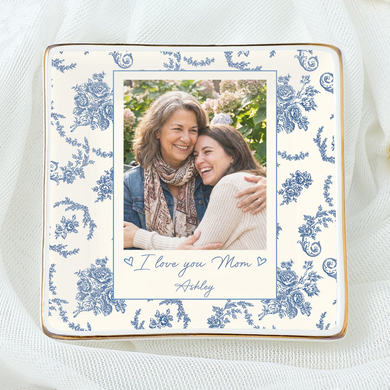 Custom Photo Jewelry Dish for Mom | Personalized Toile De Jouy Trinket Tray | Mother's Day Gift 684588