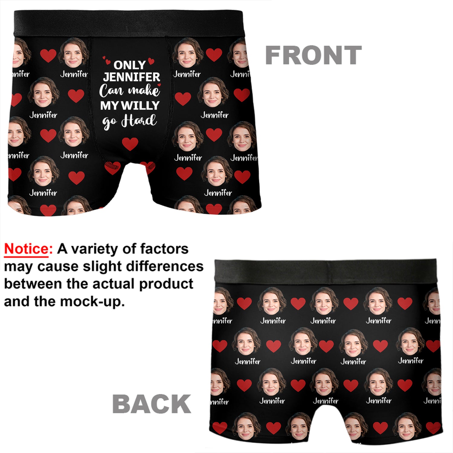 Custom Photo Only She Can Jingle My Bells | Live Preview Custom Face Photo Boxer Briefs | Funny Personalized Gift Ideas for Husband, Boyfriend, Valentines Day.