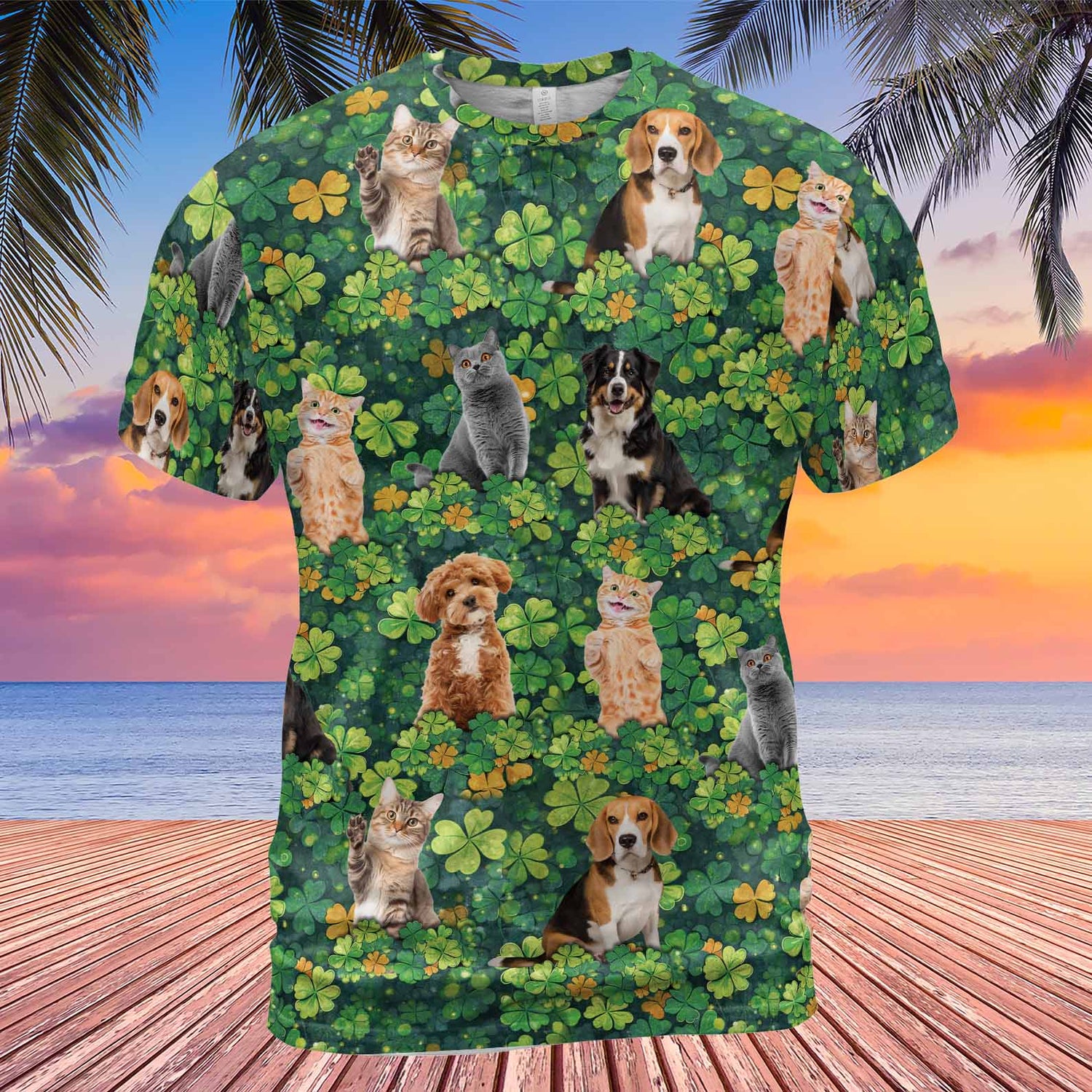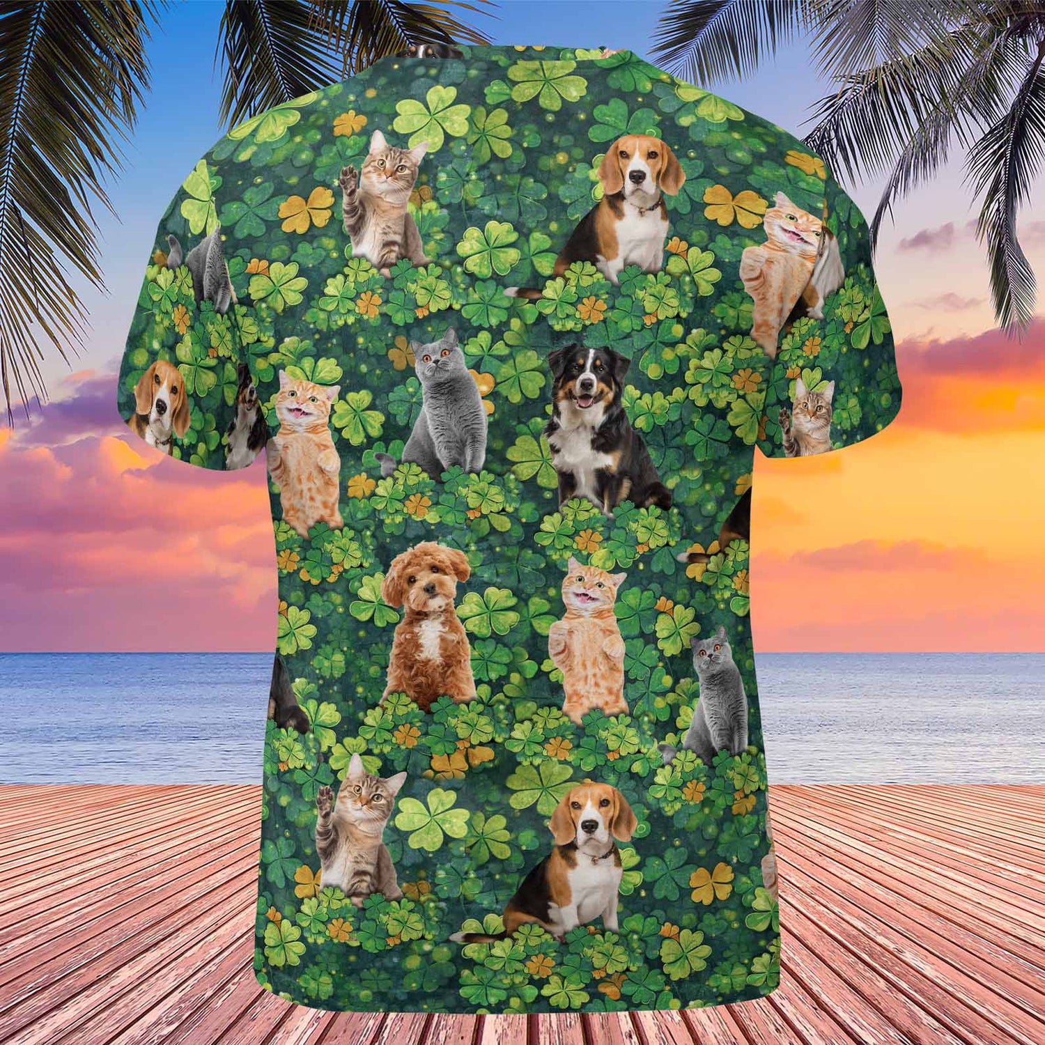 Custom Photo St. Patrick’s Day Clovers AOP Shirt, Personalized Shamrock All-Over Print T-Shirt