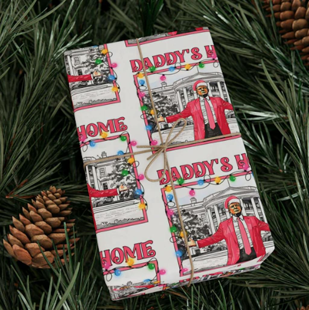 Daddy's Home In Pink Wrapping Paper, Funny Trump Wrapping Paper, MAGA Gift Wrap