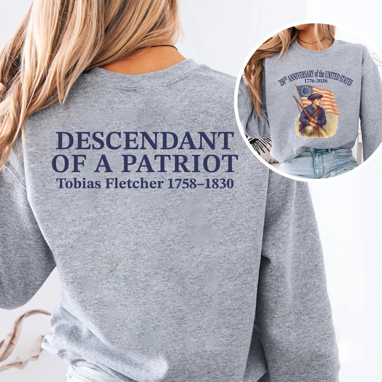 Descendant of Patriots Front & Back Shirt, Custom Name 250 Years Anniversary Shirt, Patriotic 1776–2026 Tee