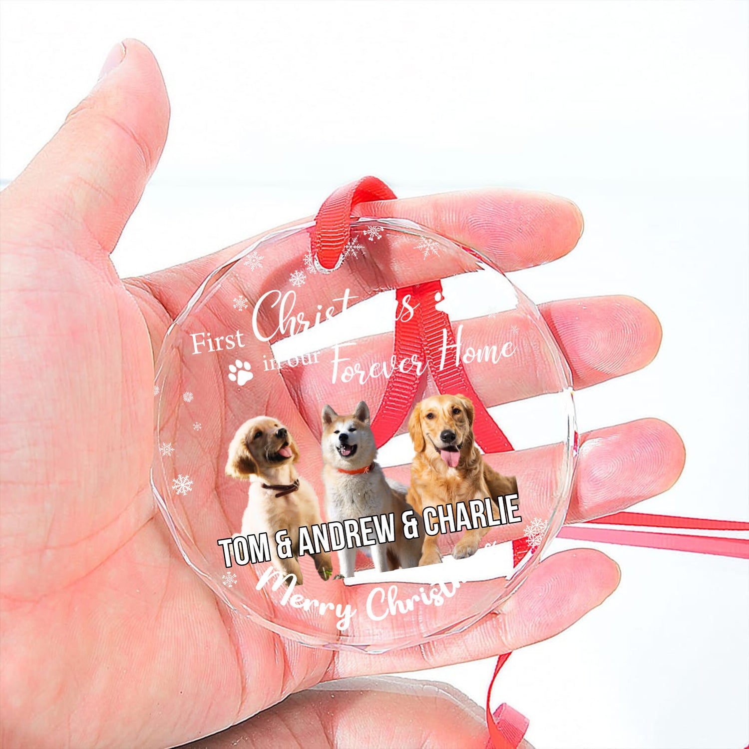 First Christmas in My Forever Home Glass Ornament | Custom Photo Glass Ornament | Personalized Gift For Dog Lovers
