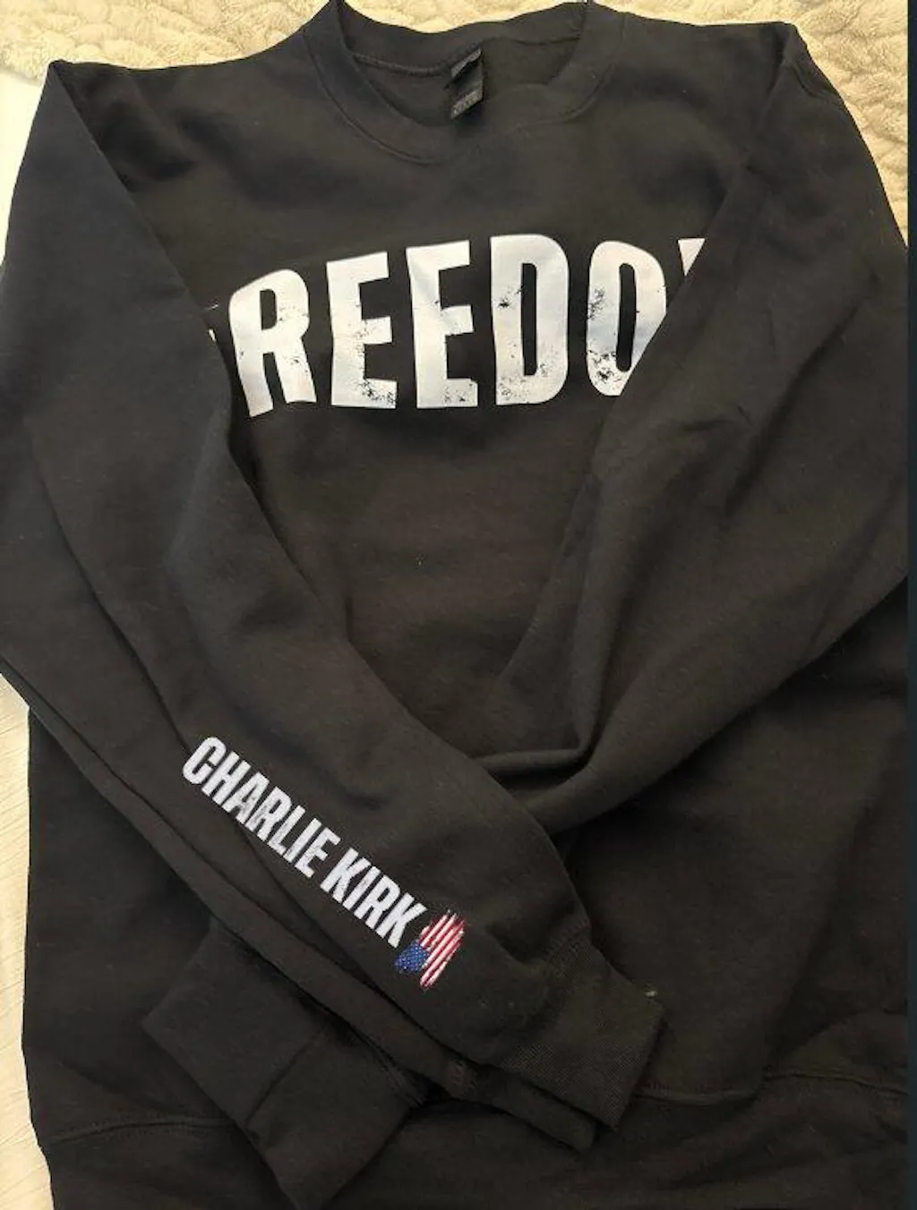 Was the wrong sweater no charlie kirk on the sleeve. I wanted a refund and they completely refused.