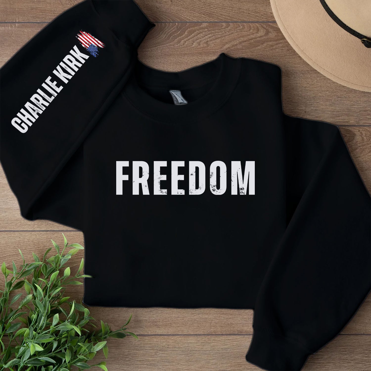 Freedom Charlie Kirk Memorial Sweatshirt | Charlie Kirk Sleeve Right Print Sweater | Human Rights Apparel 682917