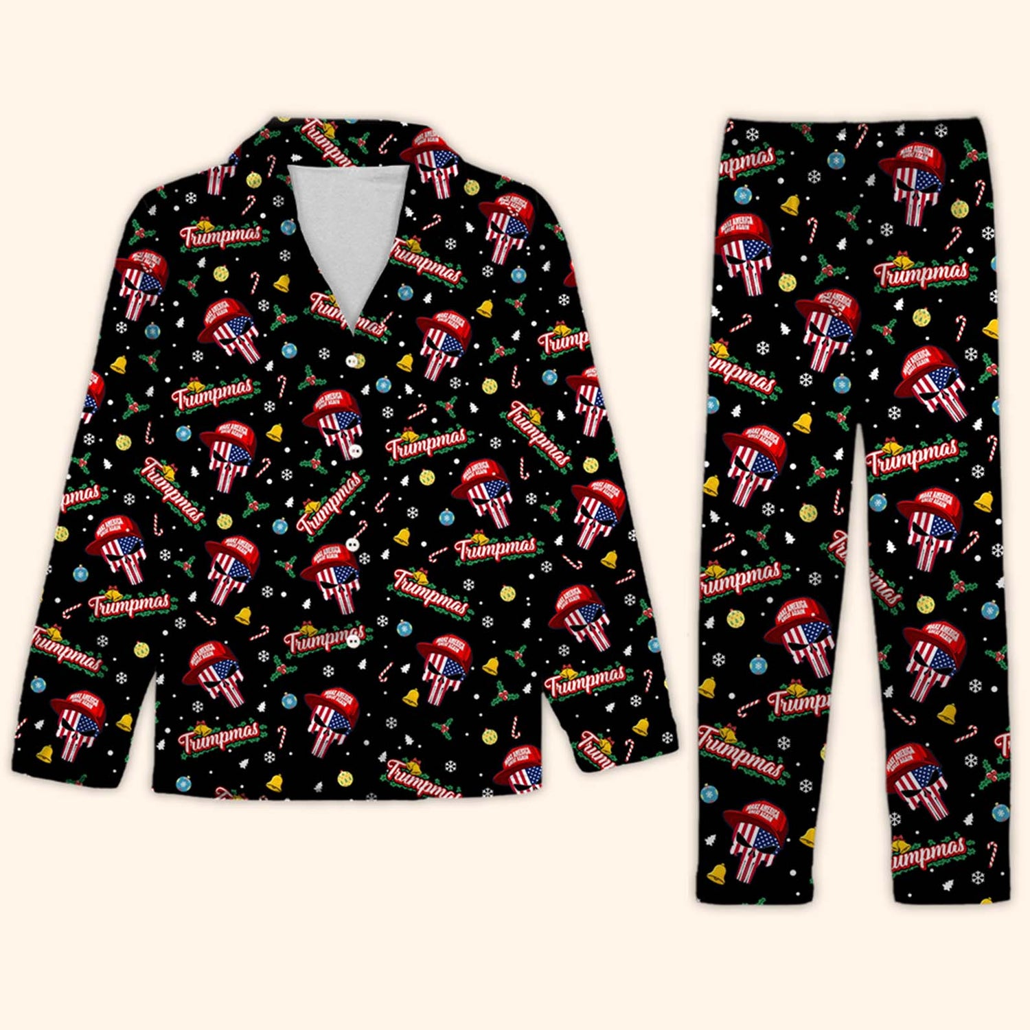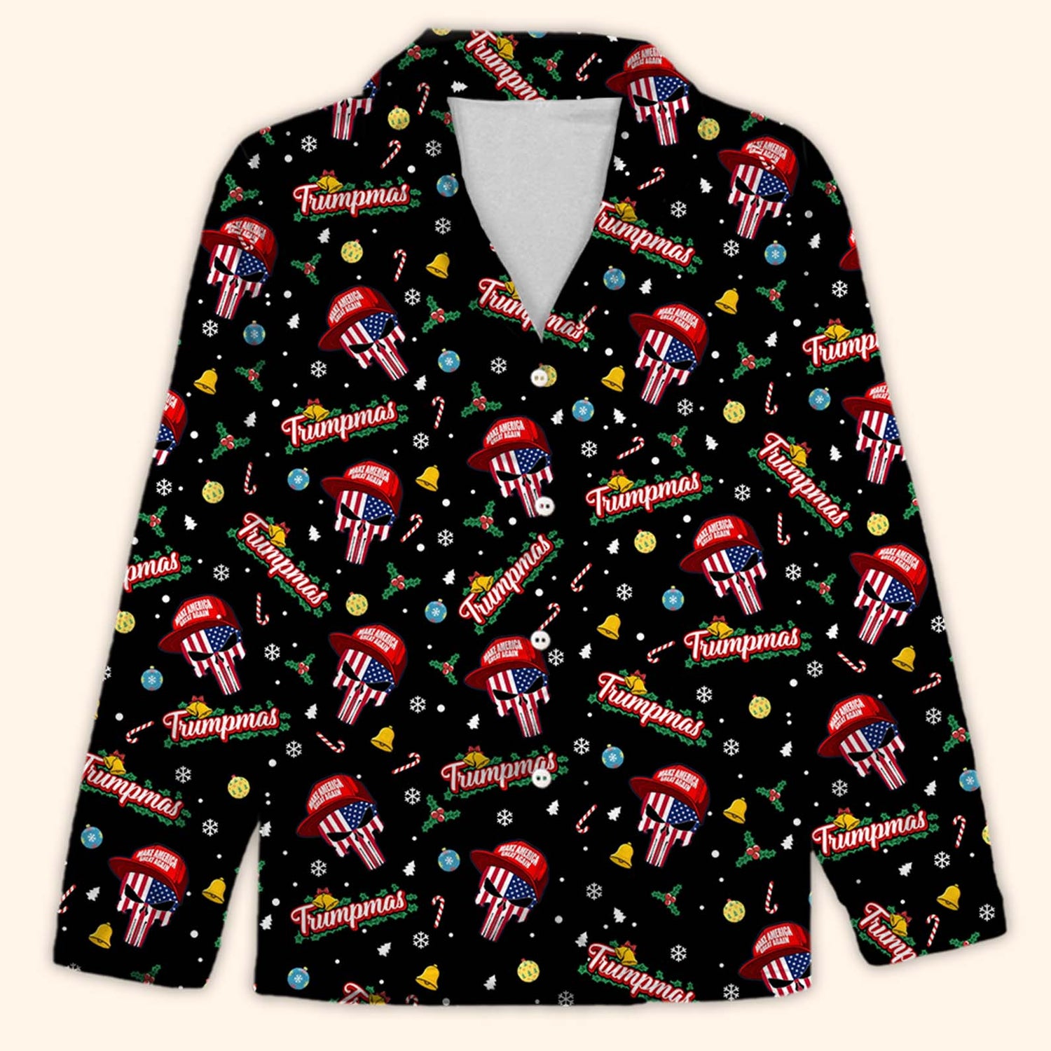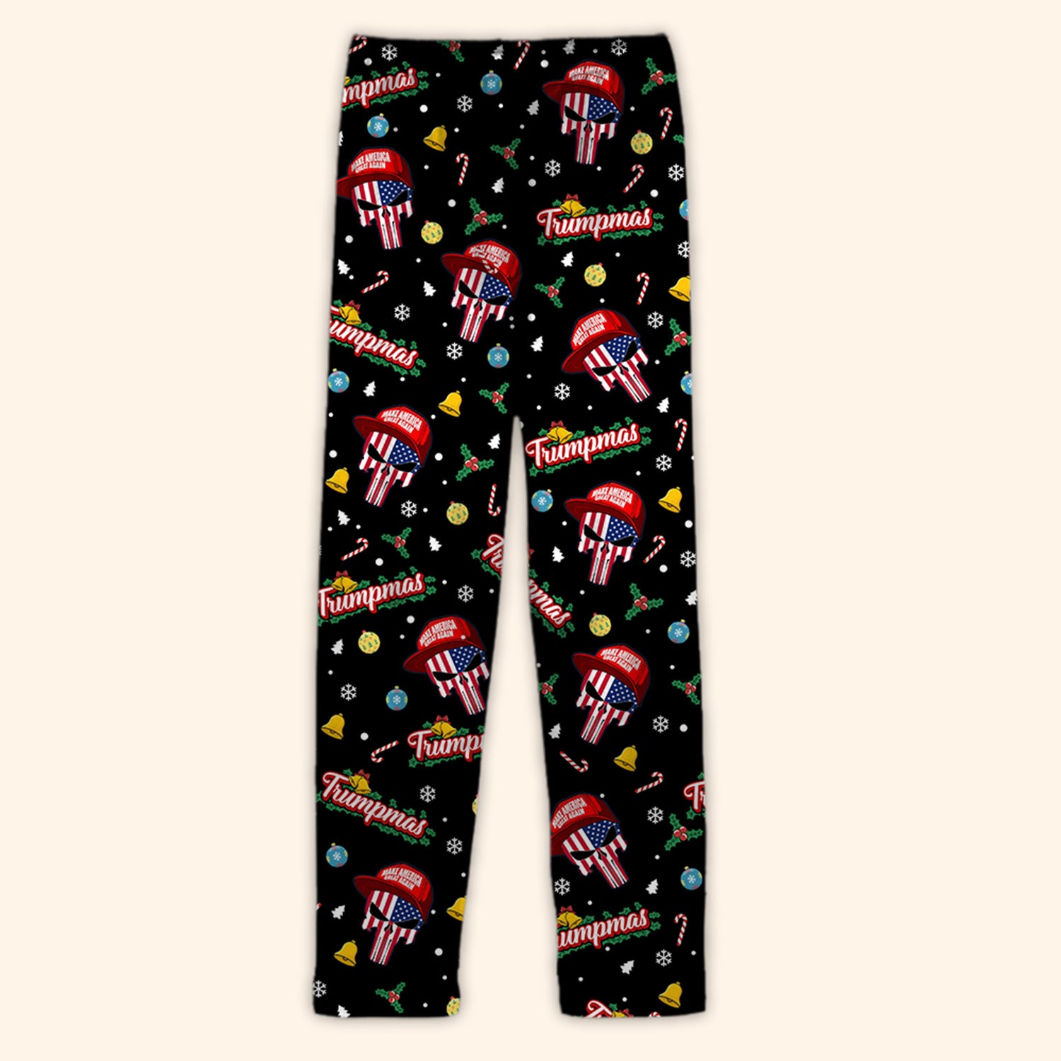 Funny Trump Santa Skull Pajamas, Trump Xmas Holiday Pajamas, President Trump Santa Pajamas