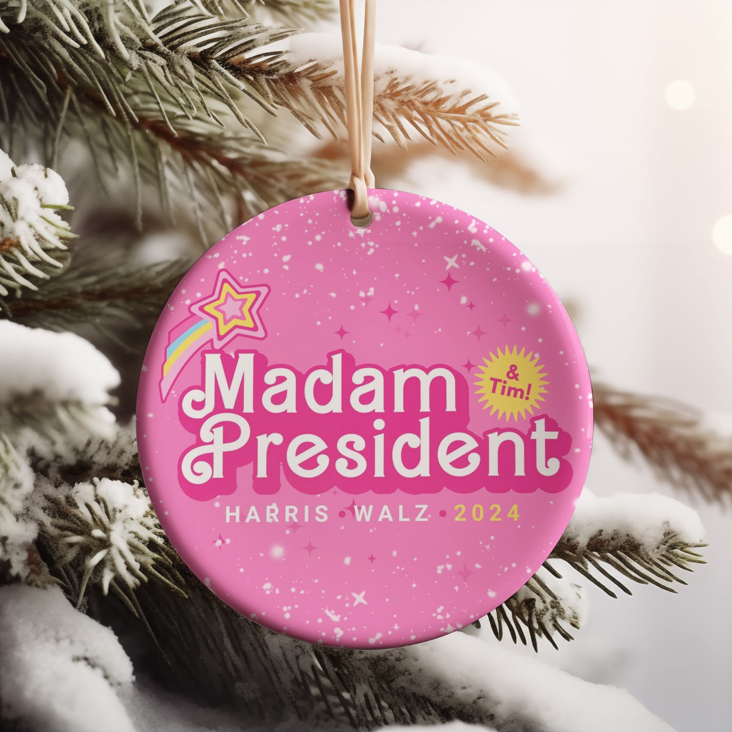 Harris Walz Madam President Ornament | Kamala Harris 2024 Ornament | Democrat Christmas Ceramic Ornament.