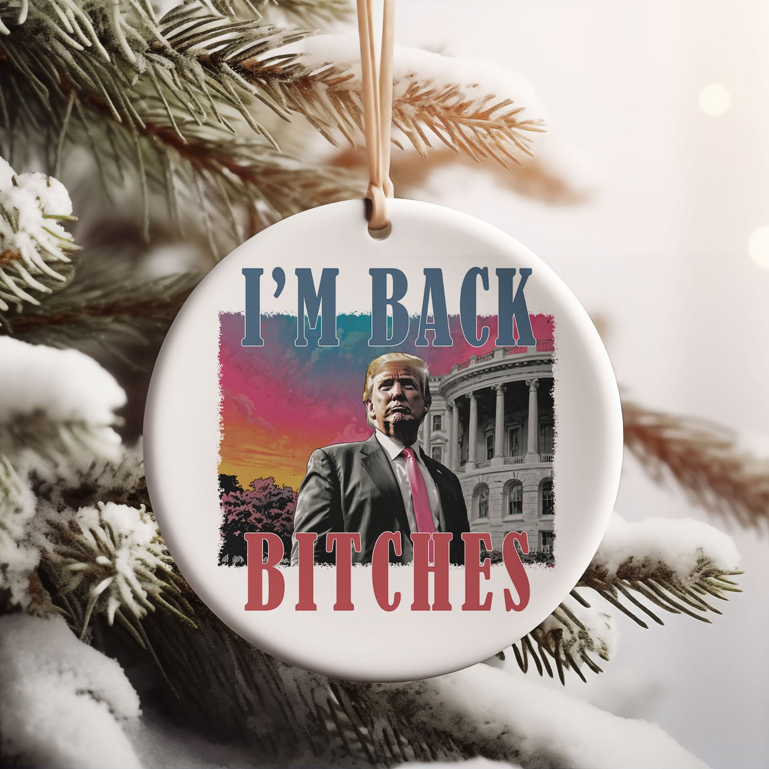 I'm Back Bitches, Trump Is My President, Trump Won, Trump 47th President Ceramic Ornament, Perfect for Car & Christmas Tree Decor.