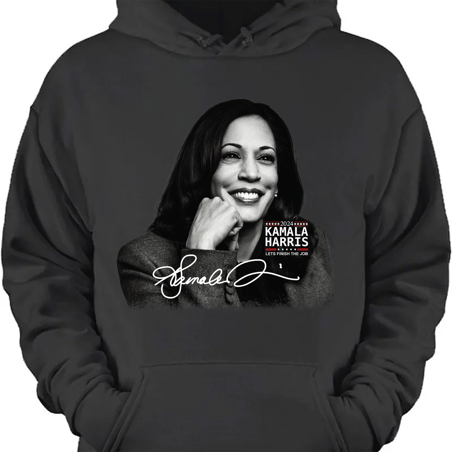 Kamala Harris Let's Finish The Job Signature Shirt | Kamala Harris 2024 Shirt | Democrat Shirt Dark T1435 - KH2