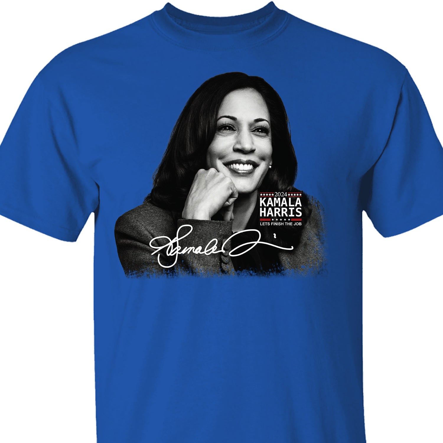 Kamala Harris Let's Finish The Job Signature Shirt | Kamala Harris 2024 Shirt | Democrat Shirt Dark.