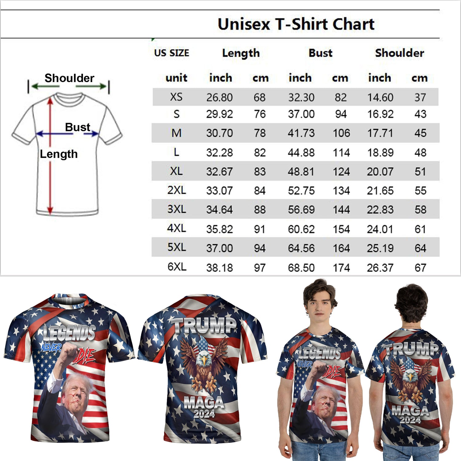 Legends Never Die Unisex 3D T-Shirt | Trump Fight Shirt | Trump Supporters All-Over Printed T-Shirt.