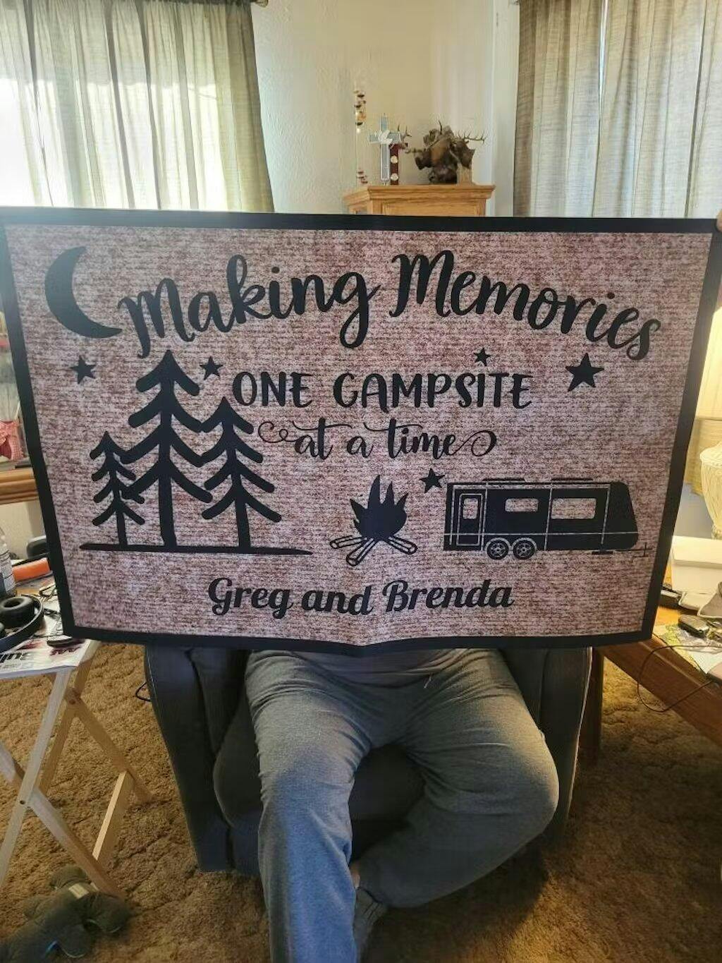 We are so happy to hear that your parents love their personalized camping doormat! We strive to create high-quality products that bring joy to our customers. Thank you for your kind words and for choosing our product as a gift. We hope to see you again for your future personalized doormat needs!
