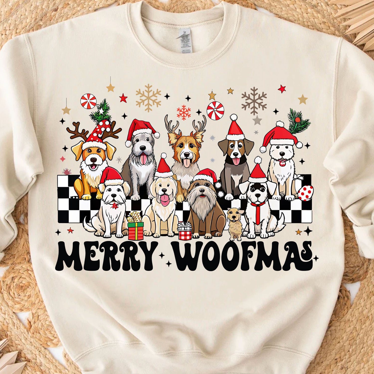 Merry Woofmas Sweatshirt, Pet Lovers Christmas Sweatshirt, Happy Christmas Ugly Sweatshirt.