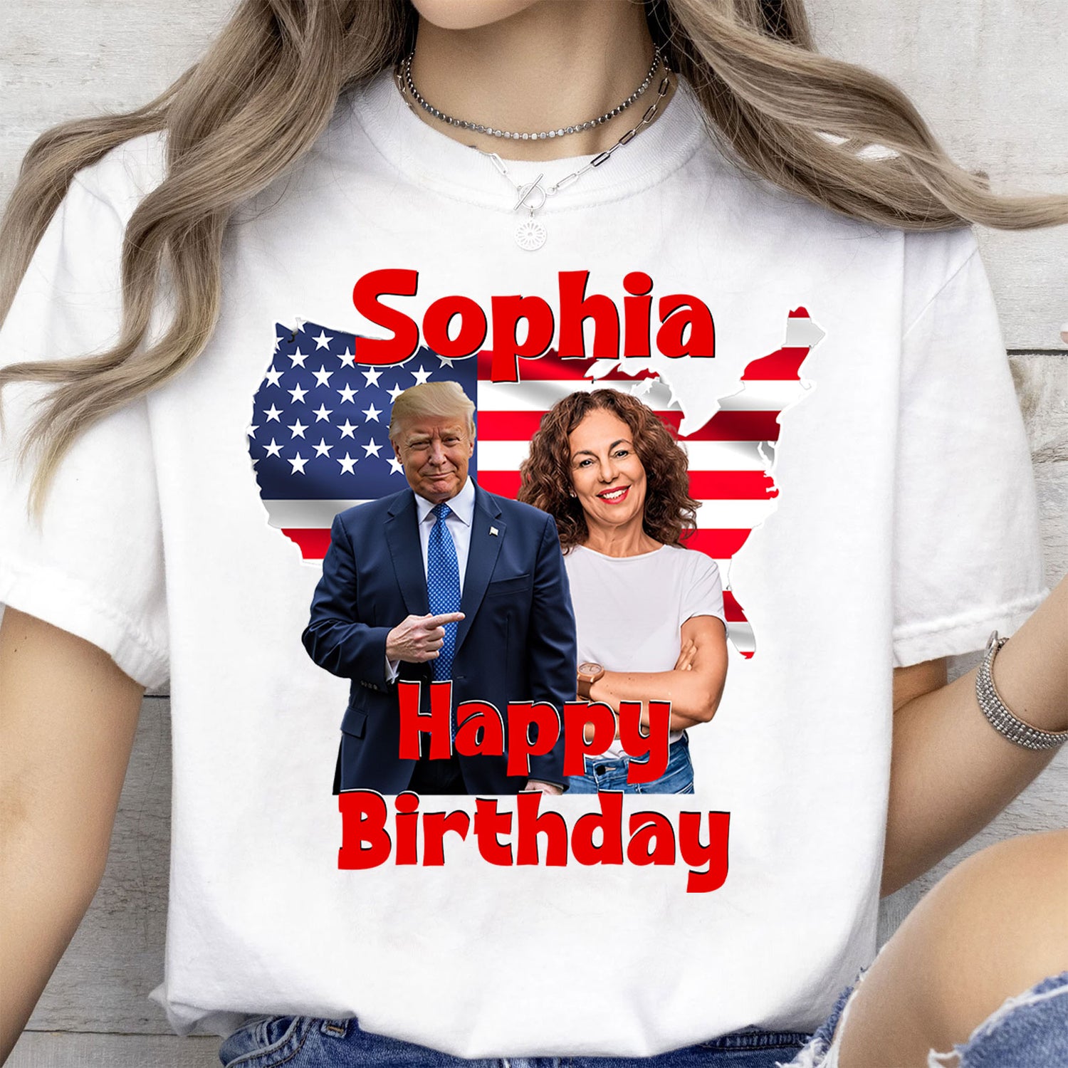 Discover the perfect blend of patriotism and personalization with our My Dad/ Mom With Donald Trump Custom Photo Shirt. This unique design features a vibrant US map backdrop, with President Donald Trump standing proudly in front. What sets this shirt apart is the ability to upload your own photo, making it a truly unique piece for any occasion. Customize the text and name to create a heartfelt gift for your mom or a special keepsake for yourself. Ideal for family gatherings, political events, or just to express your support, this shirt is a must-have for any Trump supporter. Order yours today and wear your pride in style!