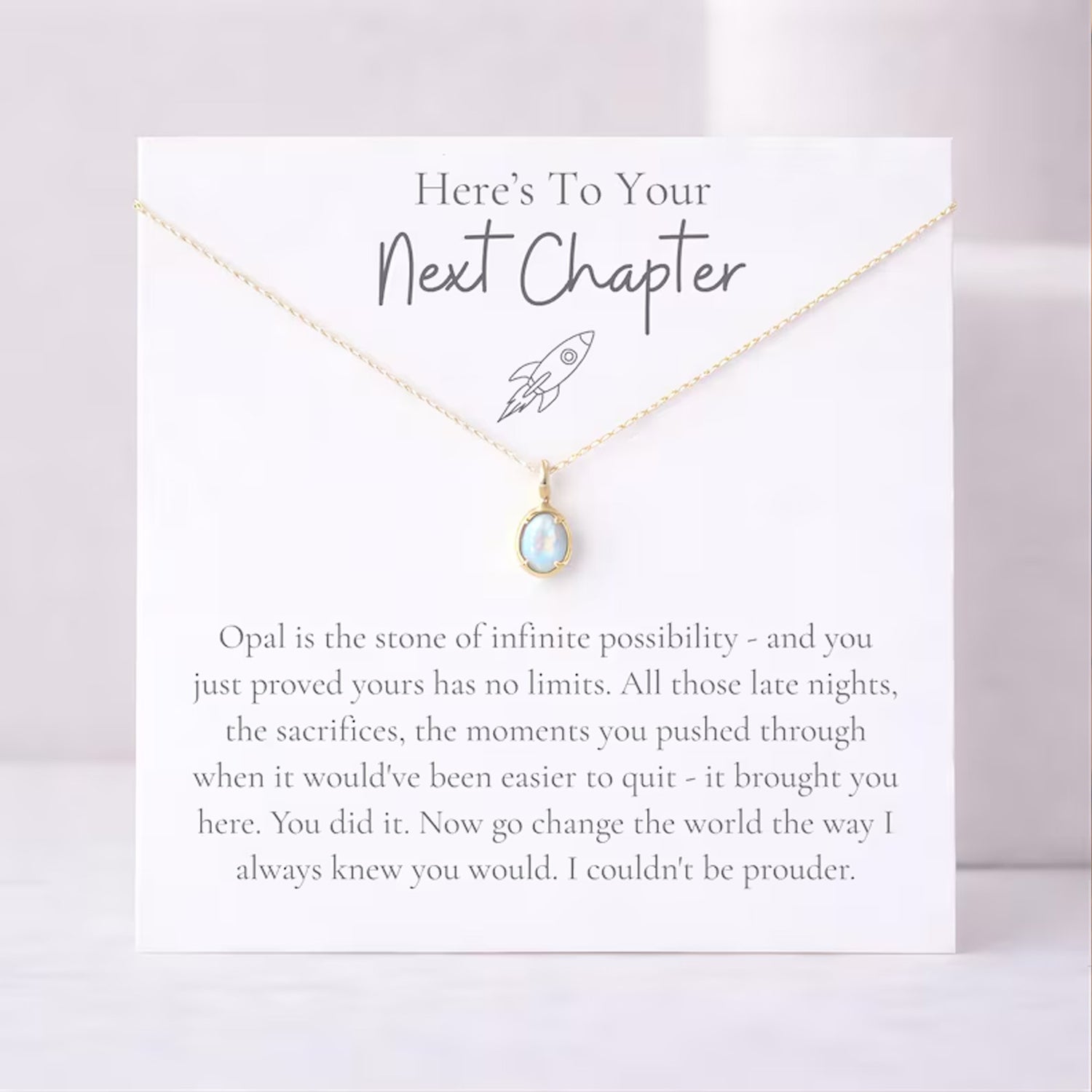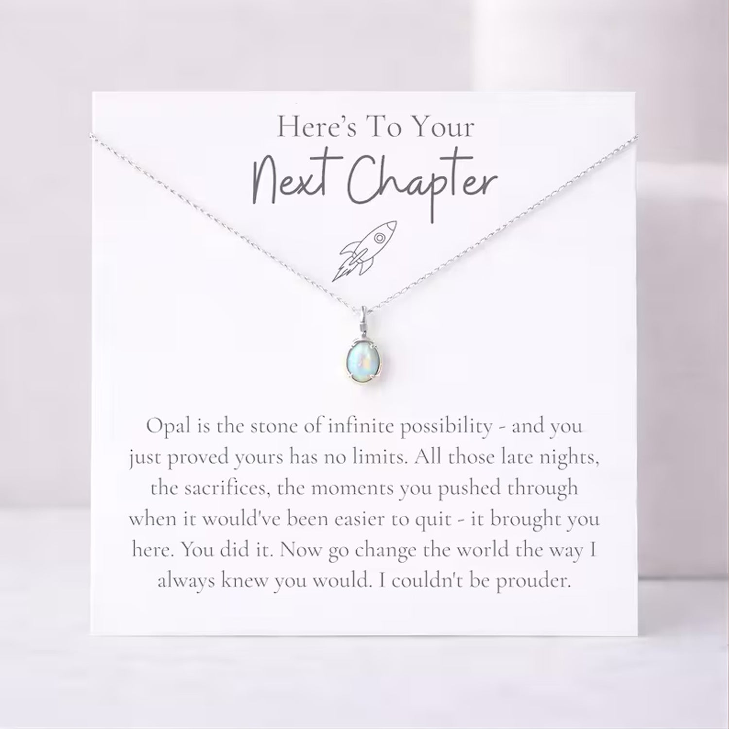 Celebrate her next big step with this elegant “Next Chapter” graduation necklace, featuring a beautiful opal pendant symbolizing hope, strength, and endless possibilities. Thoughtfully designed for daughters, graduates, and future professionals, this meaningful piece makes the perfect gift for college, med school, law school, or PhD milestones. A timeless keepsake she can wear every day as a reminder of her journey, achievements, and bright future ahead.