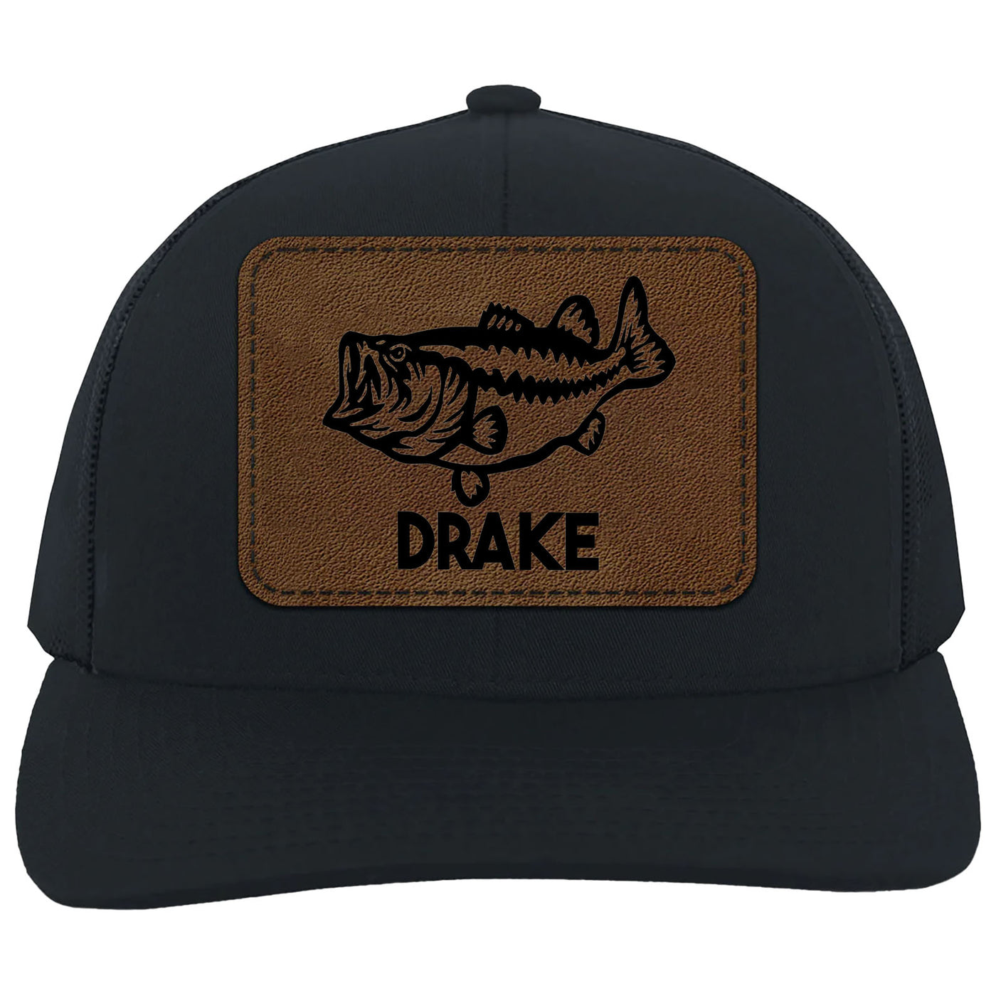 Personalized Fish Trucker Leather Patch Hat, Custom Name Cap, Father’s Day Gift, Birthday Gift for Him, Husband