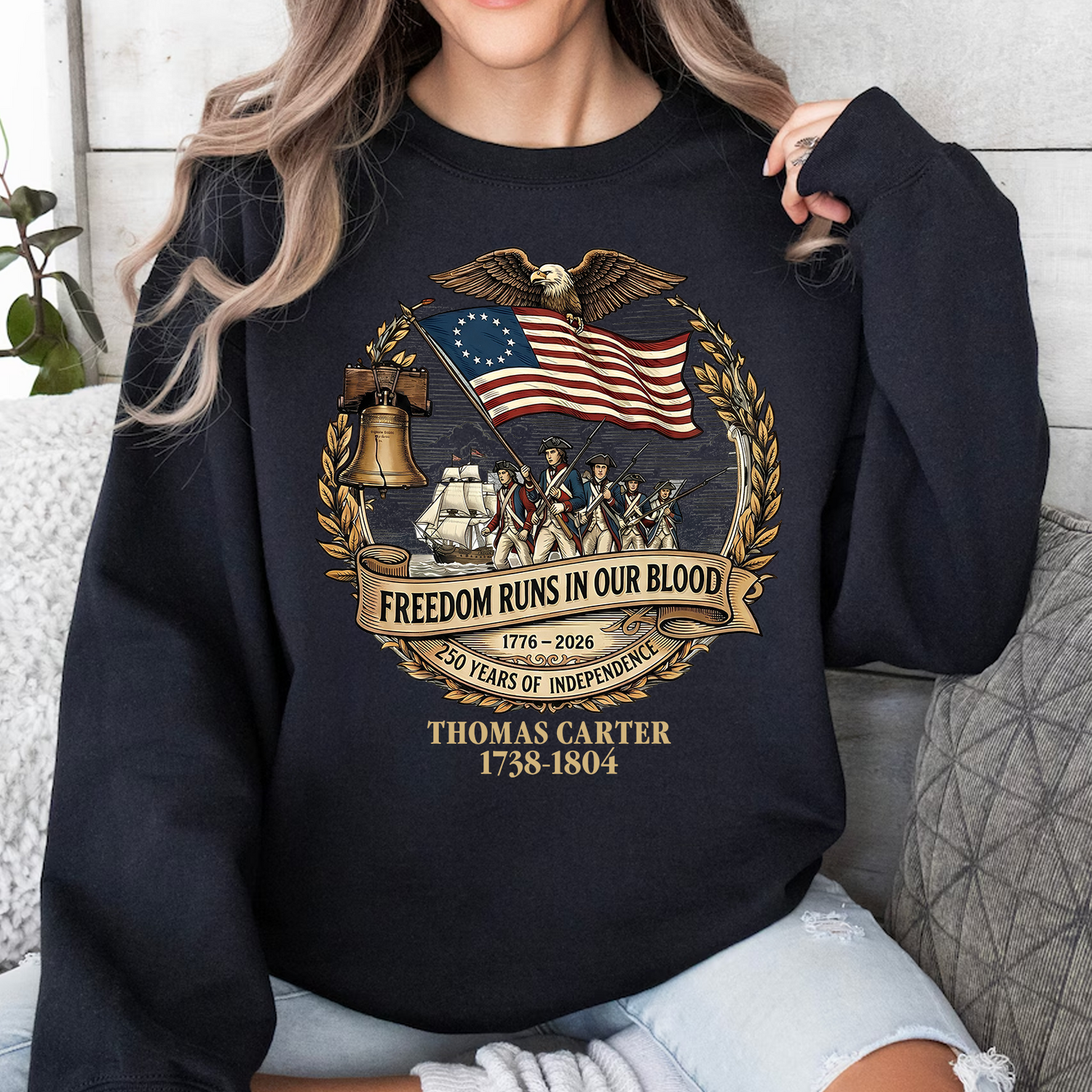 Personalized Freedom Runs In Our Blood Dark Shirt | Revolutionary War Ancestor Tee, Patriotic Tee