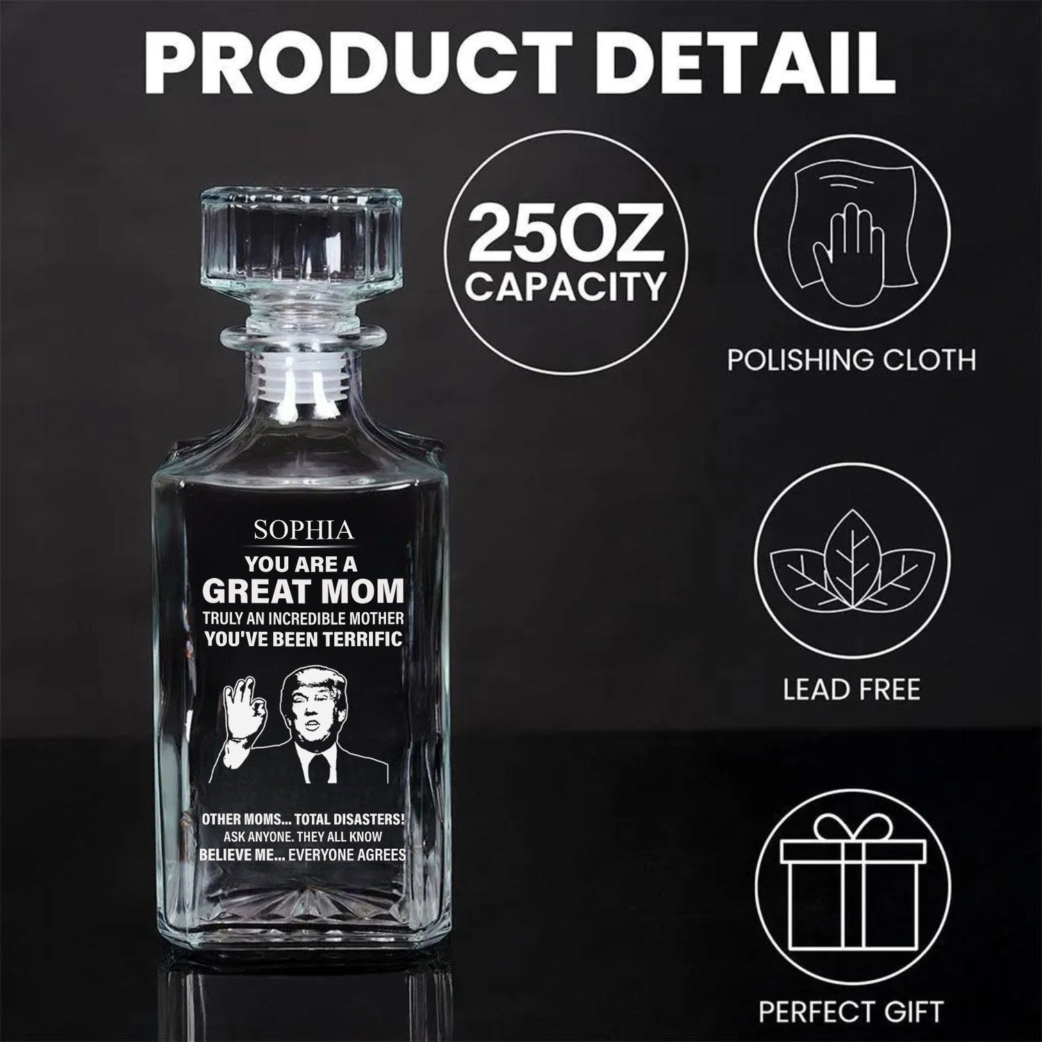 Personalized Mom Whiskey Decanter Set, Funny Trump Whiskey Glass Whiskey Bottle, Mother's Day Gift