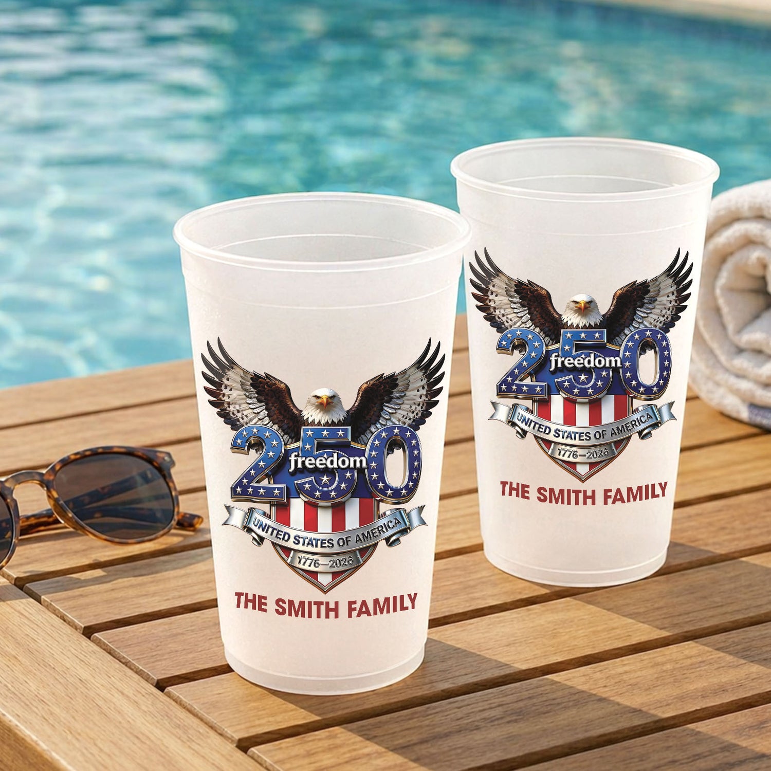 Personalized USA 250 Years Frosted Cups, Freedom Eagle 1776–2026 Party Cups, Custom Family Name Cups