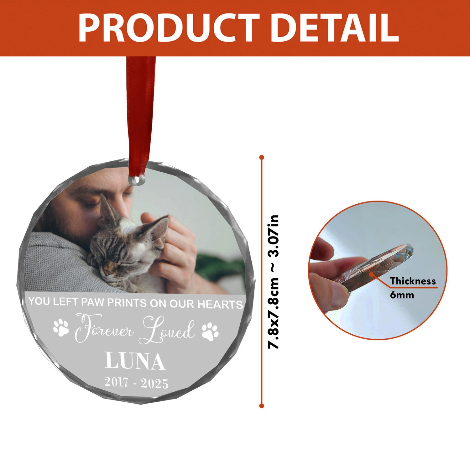 Personalized You Left Paw Print On Our Hearts Glass Ornament | Custom Memorial Pet Photo Glass Ornament For Christmas Decor 682728
