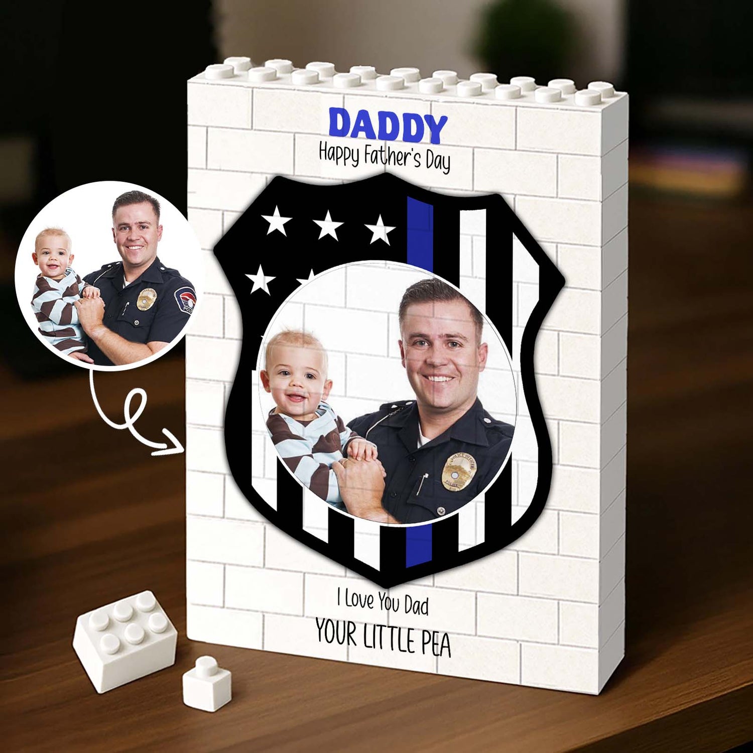 Police Officer Brick Block | Custom Photo Building Brick Blocks | Personalized Father's Day Gift