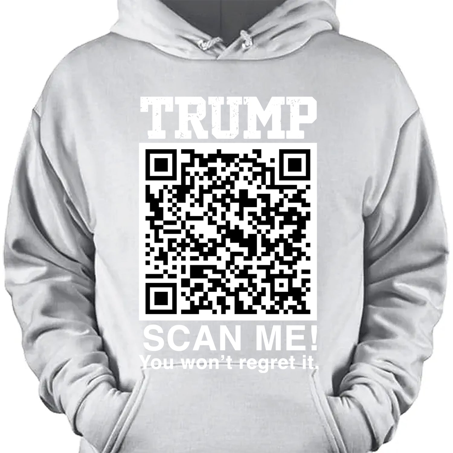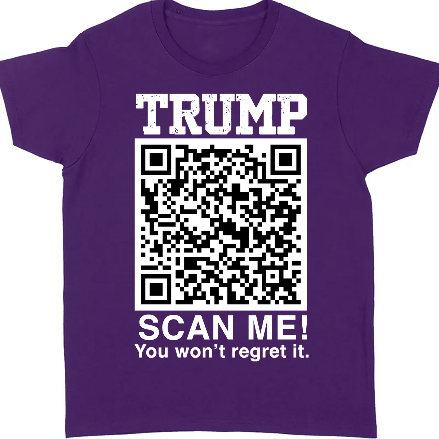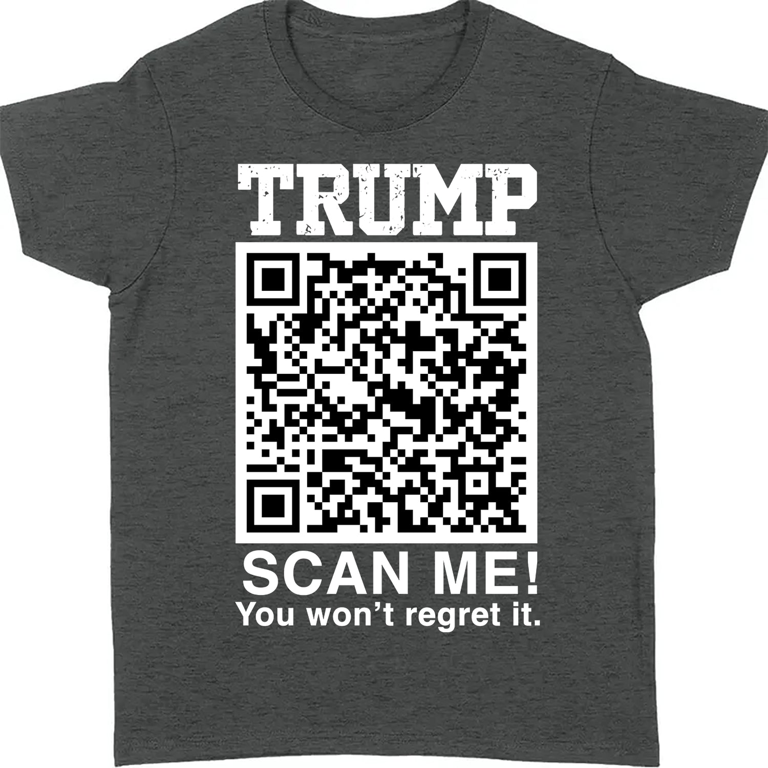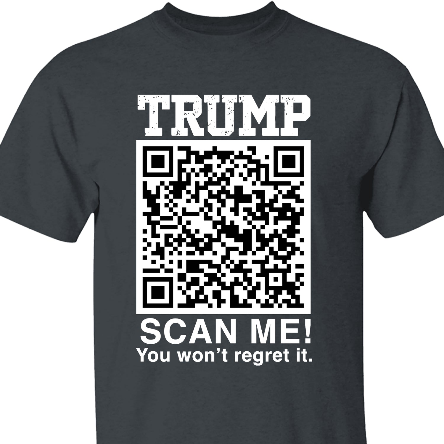 Get ready to turn heads with the QR President Trump Dance Shirt! Featuring a humorous "Scan Me, You Won't Regret" message, this fun shirt showcases a playful design of Trump dancing. Perfect for supporters of the 45th and 47th president, this dark shirt combines style and laughter, making it a great conversation starter. Ideal for casual outings or events, this unique QR code shirt is a must-have for any Trump enthusiast looking to express their support with a twist!