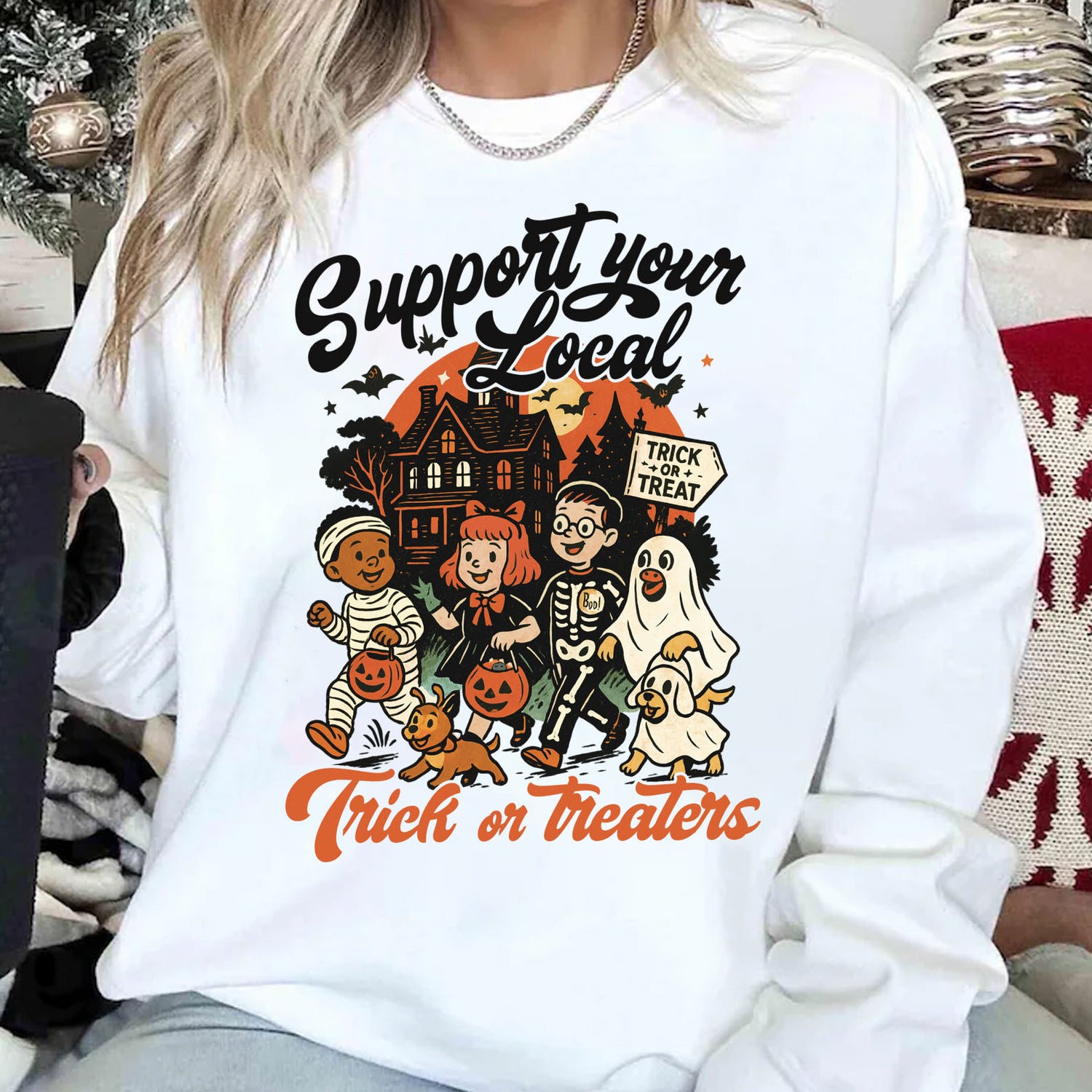Support Your Local Trick or Treaters Halloween Shirt, Vintage Retro Halloween Sweatshirt
