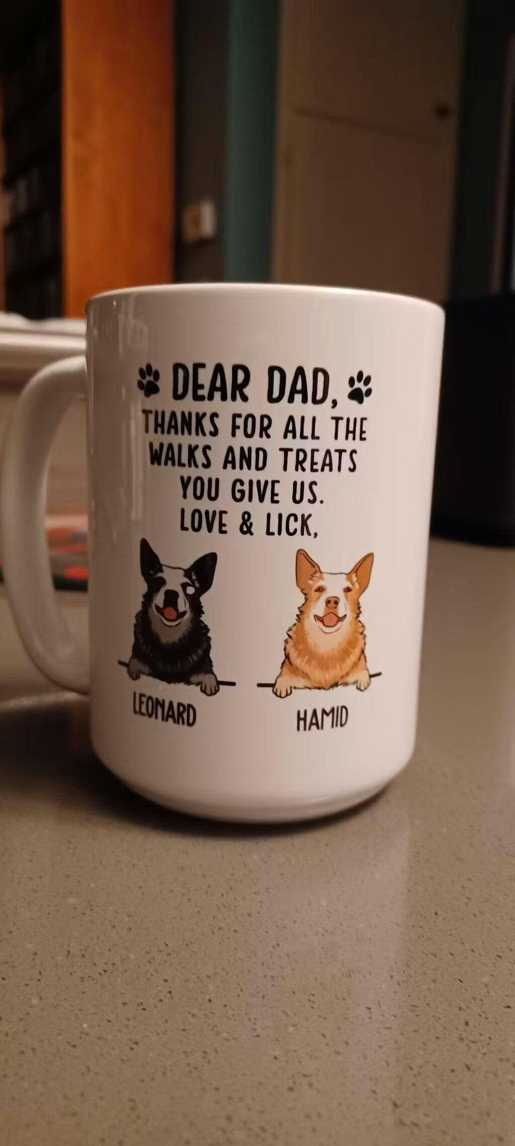 I gave this to my husband for Father's Day and he loves it! It's a nice, heavy mug and the pictures really do look like our dogs. I'll be purchasing one with cats next😊