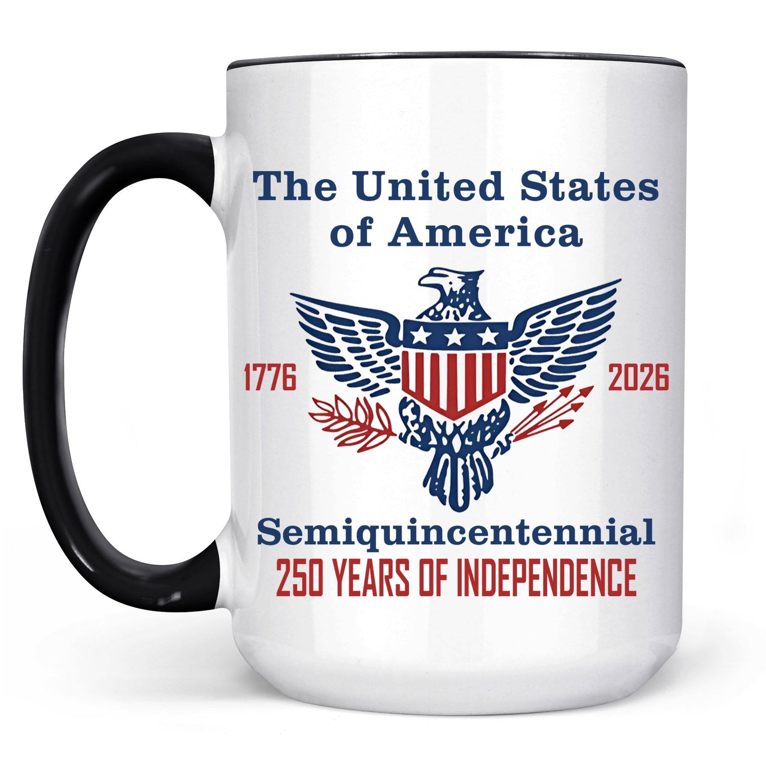 Celebrate 250 years of American freedom with this bold and timeless patriotic mug! Featuring the official American eagle seal flanked by “1776 – 2026”, this design commemorates the historic Semiquincentennial—a tribute to the enduring spirit of liberty in the United States.