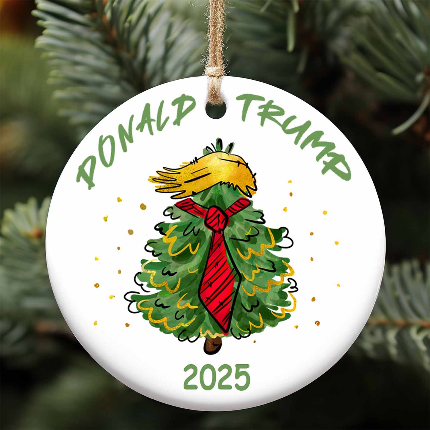 Trump 2025 Christmas Ceramic Ornament | 47th President MAGA Ornament | Patriotic Republican Tree Decoration | Trump Supporter Gift