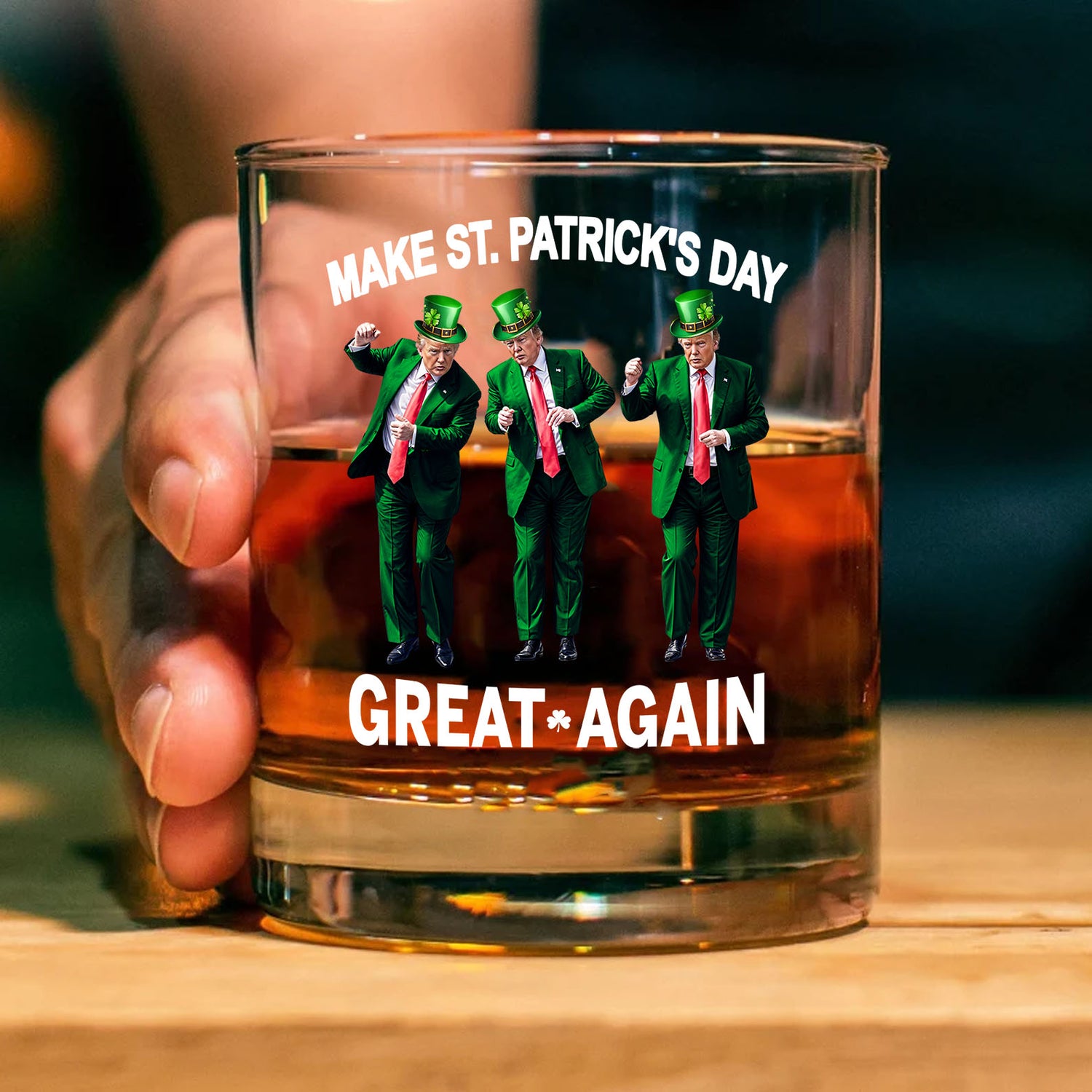 Celebrate St. Patrick's Day in style with our "Trump Dancing Make St. Patrick's Day Great Again" beer glass! Perfect for whisky lovers and party enthusiasts, this unique print glass captures the festive spirit of the holiday. Whether you're toasting with friends or enjoying a quiet drink, this St. Patrick's Day glass adds a fun twist to your celebrations. Ideal as a gift or a personal keepsake, it’s a must-have for anyone looking to make their St. Paddy's Day unforgettable. Cheers to great memories and good times!