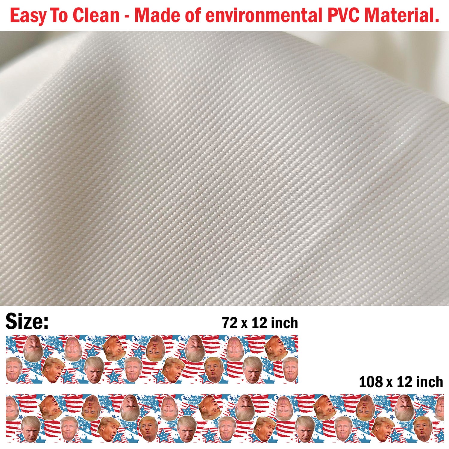 Let freedom ring—and laughter roll—with our Trump Faces Patriotic Table Runner! This wild and whimsical runner showcases a full spectrum of Donald Trump expressions against a distressed red, white, and blue background packed with splattered stars and stripes.