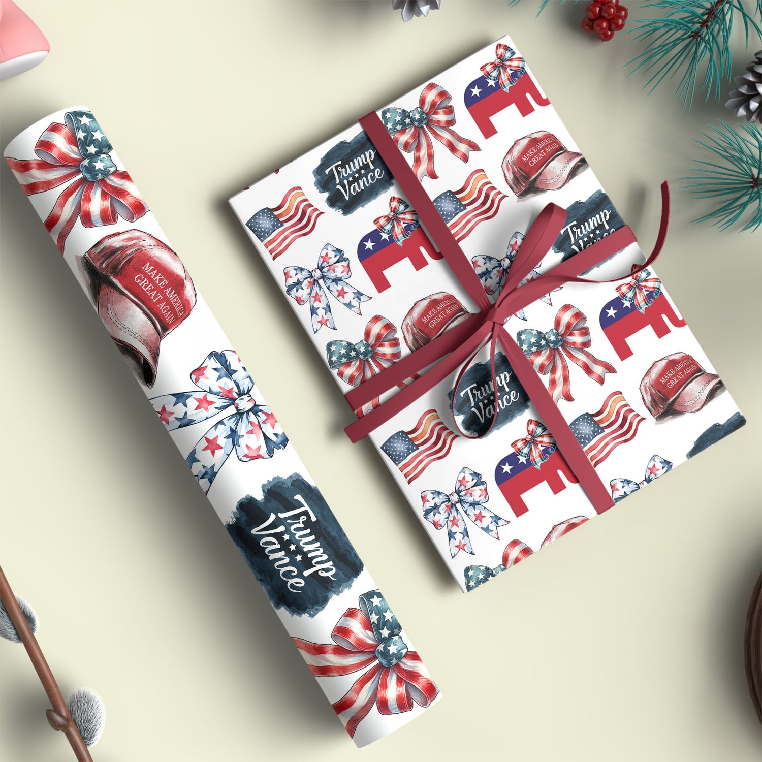 Trump Vance Coquette Wrapping Paper, MAGA Gift Wrap, Patriotic Present, Republican Gift
