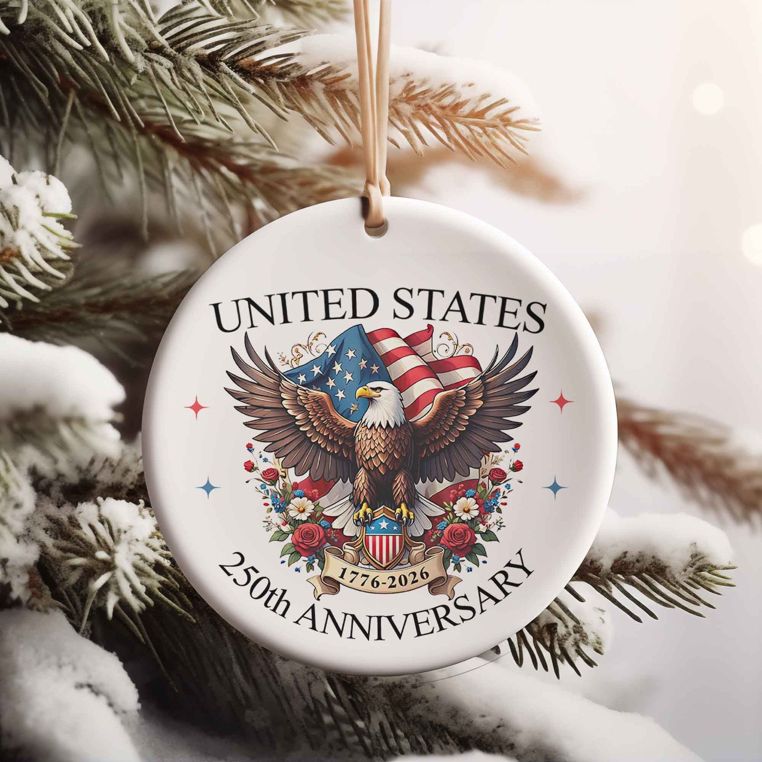 United States 250 Years Anniversary Ceramic Ornament | Patriotic 1776–2026 4th of July Christmas Decor 683330