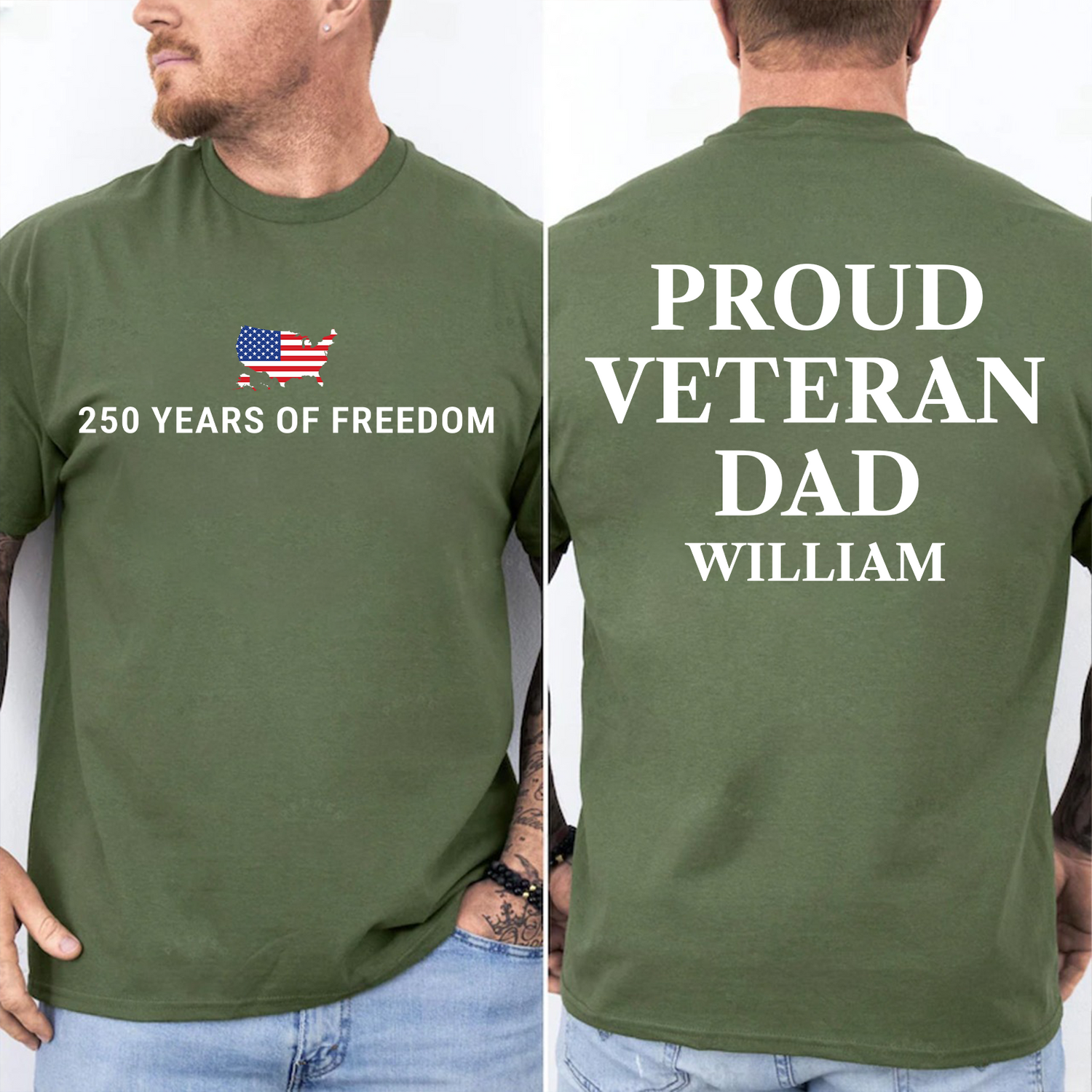 USA 250 Years Of Freedom Front & Back Shirt | Patriotic Proud Veteran T-Shirt Gift For Dad/Mom