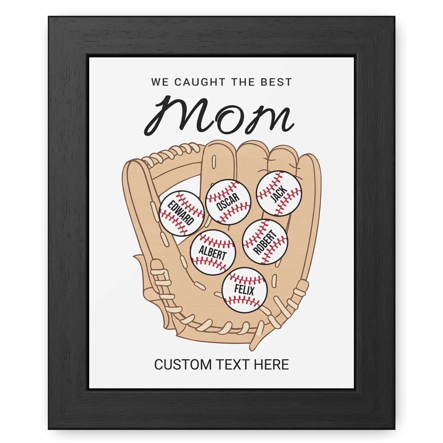 We Caught The Best Mom | Personalized Custom Baseball Mom Picture Frame With Kid's Name | Gift For Mom, Baseball Lover | Mother's Day Gift