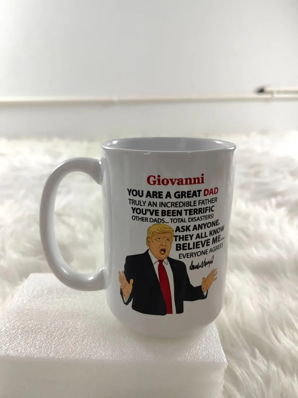 I got this mug as a gift for my mother for her birthday. Turns out she hates Trump which makes it even funnier for me. Would recommend!
